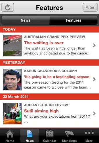 ESPNF1 adalah aplikasi gratis yang dirancang khusus untuk penggemar Formula 1, tersedia di platform iPhone. Aplikasi ini memberikan akses ke berita terkini, hasil balapan, dan jadwal perlombaan yang komprehensif. Dengan antarmuka yang ramah pengguna, pengguna dapat dengan mudah menemukan informasi yang mereka butuhkan tentang tim, pembalap, dan sirkuit. Fitur interaktif juga memungkinkan pengguna untuk mengikuti perkembangan langsung dari setiap balapan, menjadikannya sumber informasi yang sangat berharga bagi para penggemar olahraga ini.